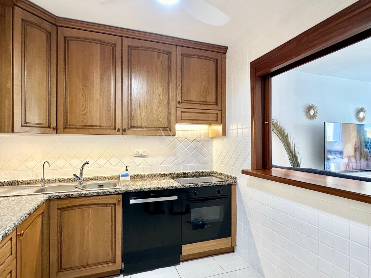 It has a bright bedroom with Built-in wardrobes, sunny terrace overlooking the pool, fully equipped American kitchen and living room with access to a covered terrace with glass curtains and partial sea views. Bathroom with washing machine/dryer and electric toilet/bidet.