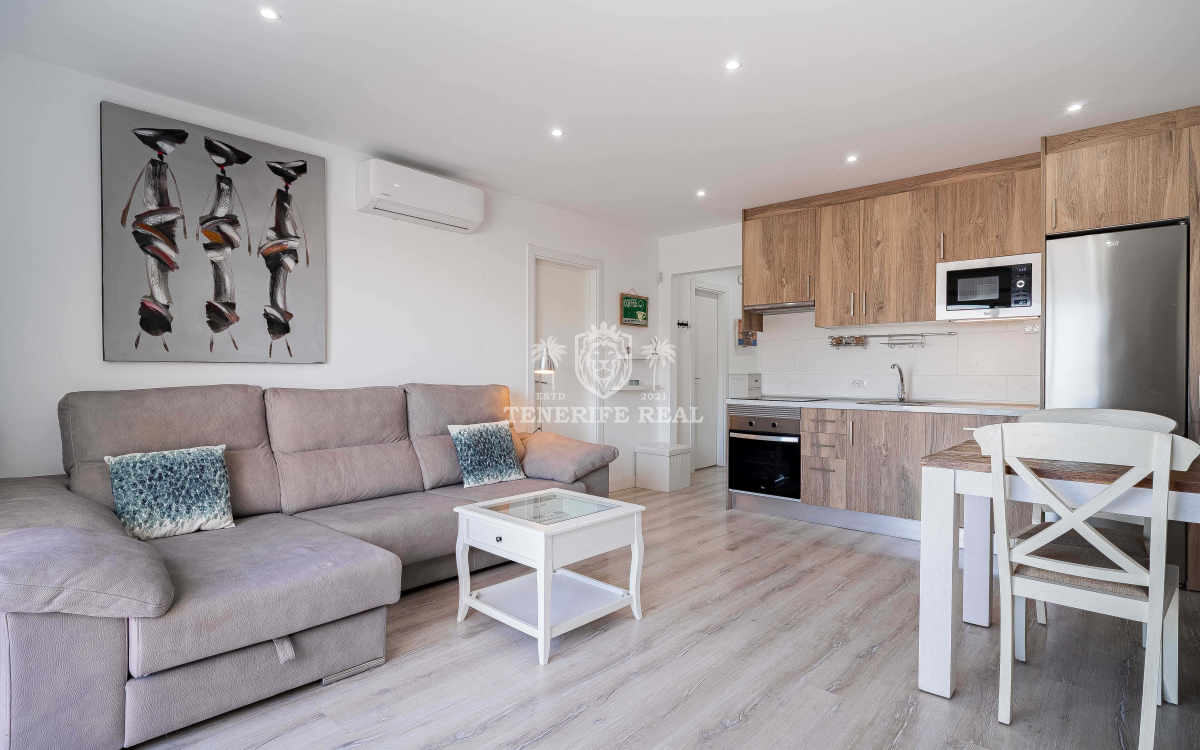 We are pleased to offer a bright and stylish apartment in the highly sought-after area of Costa Adeje, located in the residential complex Balcón del Atlántico. The apartment has a total area of 58.29 m² plus a spacious terrace of 12.96 m² with stunning ocean views.
