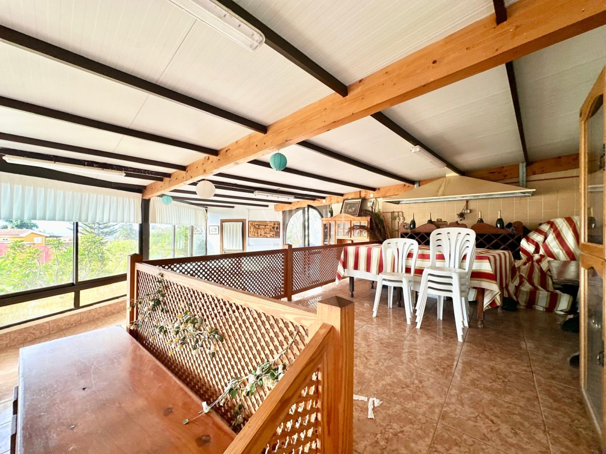 In addition, there is a separate annex with a bedroom, bathroom, and patio, as well as another area with a fully equipped kitchen with oven and barbecue, connecting to a 130 m² glass-enclosed lounge currently used as a large dining room.