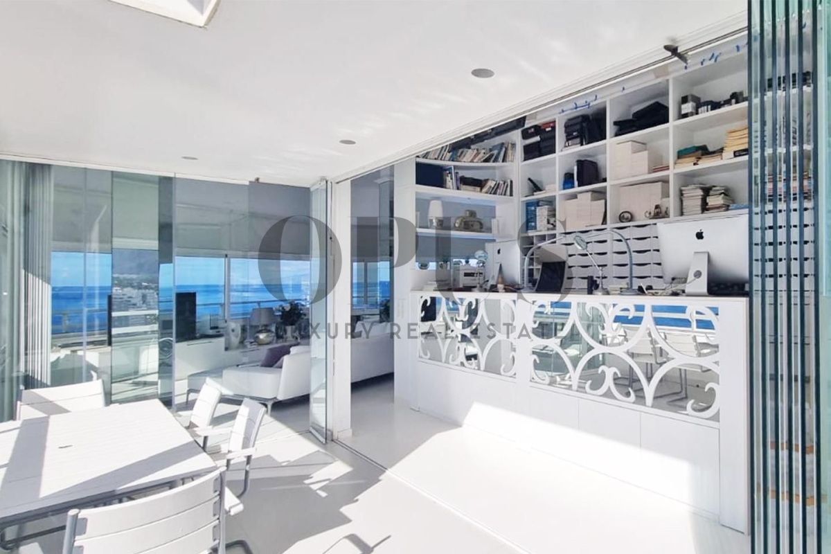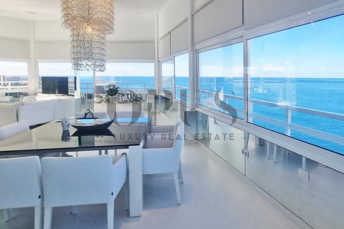 Exclusive 1-Bedroom Penthouse with 180º Sea Views, First Line to the Sea, San Eugenio Bajo, Complex Villamar. Opus is pleased to offer a unique gem: an impressive penthouse located on the 9th floor, featuring stunning 180º panoramic views of the sea. This exceptional space boasts large windows that extend all the way up to the ceiling, allowing for breathtaking views of both the ocean and the mountains, no matter where you are in the home. Additionally, these windows let in natural light, flooding the apartment and creating a bright, welcoming atmosphere. With a total area of 192 m², the penthouse is thoughtfully divided into a spacious living-dining room, an exceptional fully equipped open-plan kitchen that combines modern design with functionality, perfect for cooking while enjoying the views. The overall style of the property is very minimalist, with a clean, modern aesthetic complemented by large mirrors that visually expand the space and reflect the stunning views. Everything is arranged in an open design, creating a sense of space and elegance. The elegant bedroom with an en-suite bathroom features an integrated bathtub, adding a touch of luxury and originality. Additionally, there is a second bathroom for added convenience. From the bedroom, a staircase leads to a small private space where the current owner has created her own wellness corner, with gym equipment for training without leaving home. The penthouse is sold fully furnished, ready to be enjoyed by new owners seeking a sophisticated and stylish home. The well-maintained complex with an elevator offers a communal pool where you can relax and enjoy Tenerife's weather at its best. Its location is unbeatable, being first line to the sea, just steps away from the crystal-clear waters. It is also surrounded by all the facilities you could want: restaurants, bars, shops, supermarkets, and much more, all within walking distance. This penthouse is a unique opportunity for those seeking luxury, exclusivity, and a prime location in the heart of Tenerife, with breathtaking views. Don't miss this opportunity! The information provided is not contractual. The offer is subject to errors, price changes, omissions, and/or withdrawal from the market without prior notice. Opus is the luxury division of Luxury World Properties, created to offer a curated selection of exclusive apartments and villas in Tenerife. It is aimed at a discerning clientele seeking excellence, distinction, and a high level of service. Luxury World Properties, with over 26 years of experience in the real estate sector, has an international team of experts providing personalized and professional support at every stage of the purchase or investment process.