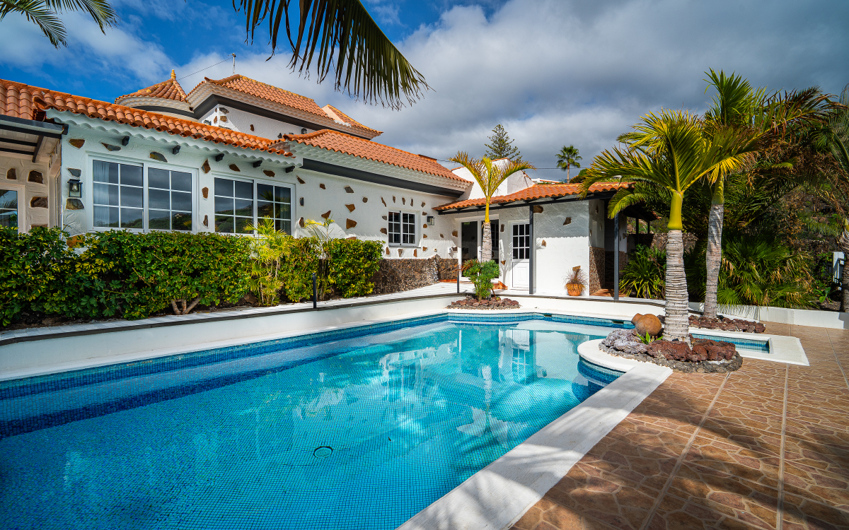 This spacious villa of 303 m² is located in the quiet residential area of Los Menores in southern Tenerife. It offers open views of the ocean, mountains, and surrounding islands, making it ideal for short-term stays for families and larger groups seeking privacy and comfortable space.