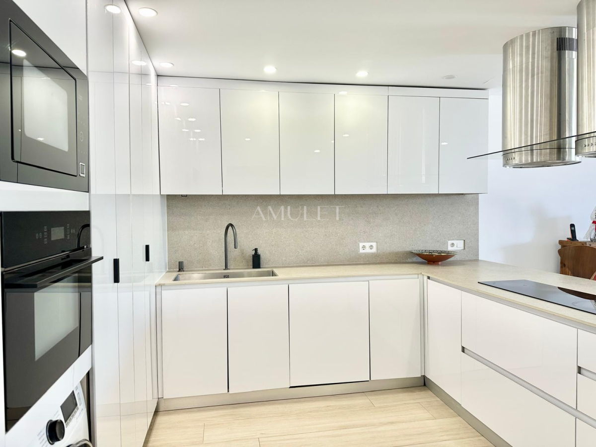 The kitchen is one of the bungalow’s highlights: modern, with brand-new appliances, generous storage space, and an elegant Silestone countertop. The living-dining area stands out for its brightness, spaciousness, and high-end finishes, creating a cozy yet sophisticated atmosphere.