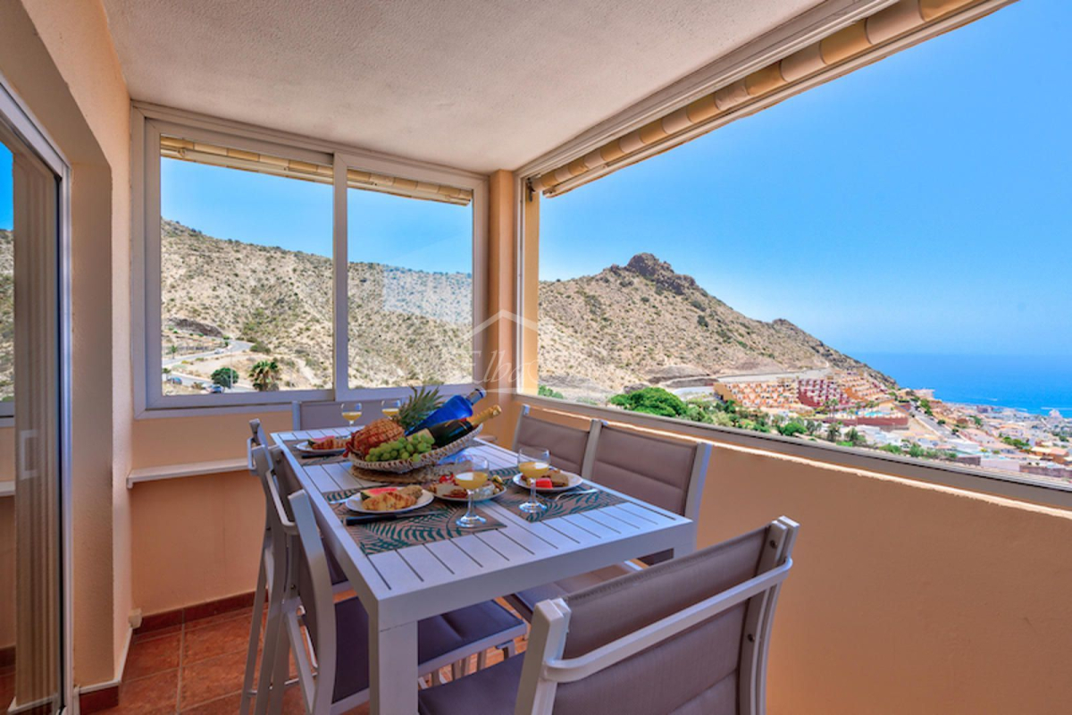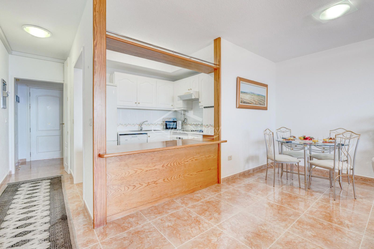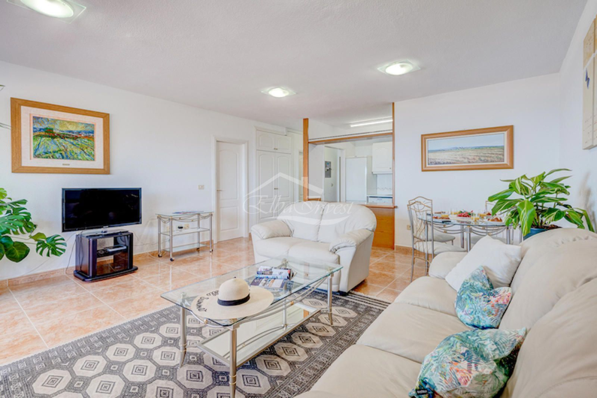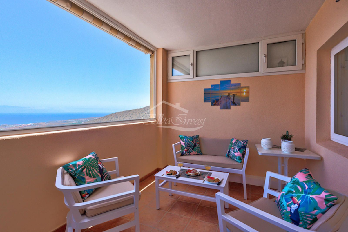 We present this magnificent corner penthouse with 2 bedrooms, 2 full bathrooms, and 1 guest toilet, located in one of the quiet and sought-after residential areas of southern Tenerife: Roque del Conde, Torviscas Alto.Situated in a well-maintained private residence, this property offers everything you need for comfort and peace: communal swimming pool, included parking space, and well-kept common areas.Being a corner penthouse, it has no neighbors above or on one side, ensuring unique privacy. Additionally, being at the end of the hallway, the property features a spacious living room with approximately 10 sq.m. extra, providing greater comfort and space.The apartment is sold fully furnished and stands out for its stunning open views of the ocean and La Gomera. Every evening, enjoy guaranteed spectacular sunsets from the terrace.A perfect home for those seeking tranquility and unparalleled views in a privileged location.The listed area includes all elements of the property. Additional information: community fees: €75/month, garbage removal: €36/semester, IBI tax: €265/year. Year of construction: 2002. Vacation rentals allowed.