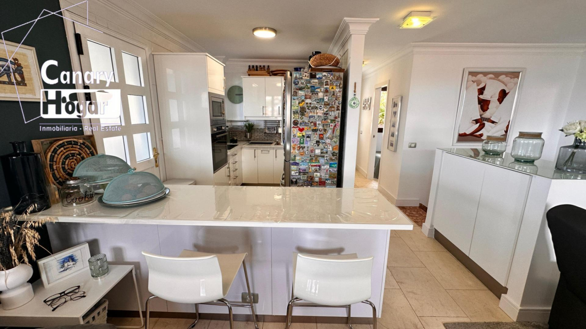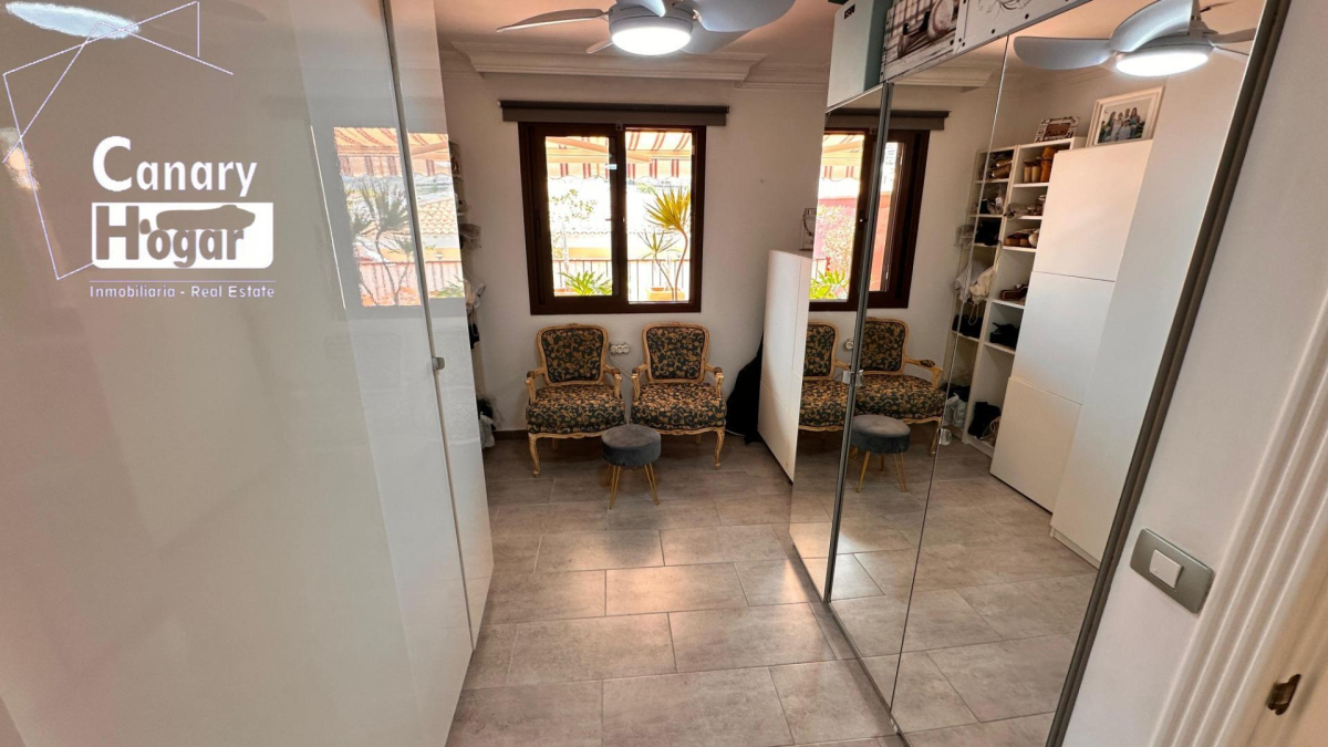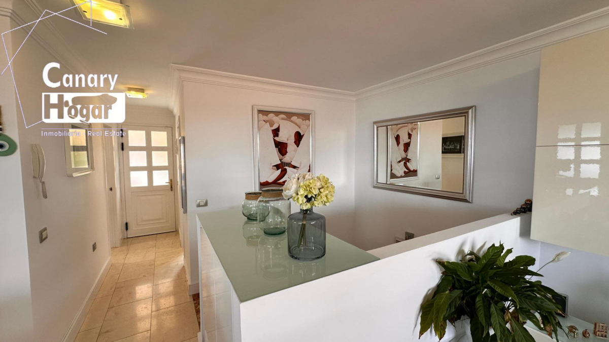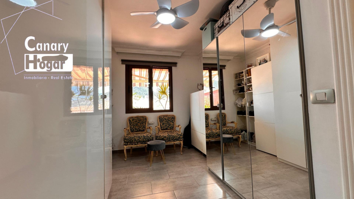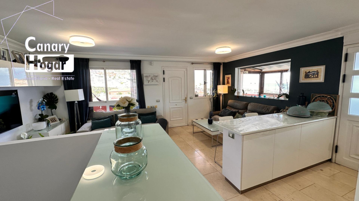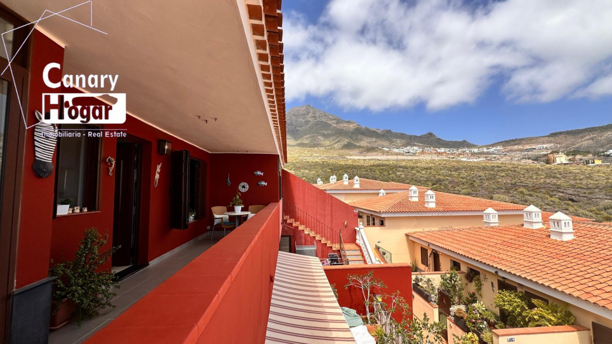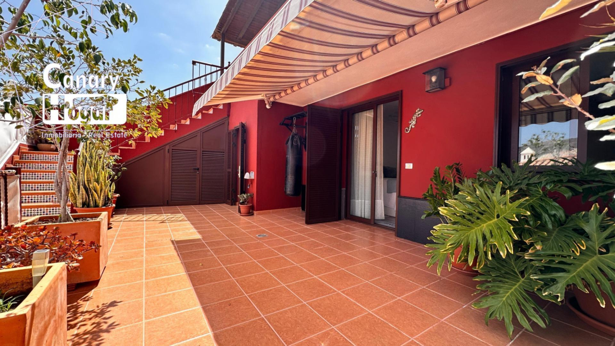 Built area (according to the title deed): 92.57 m² interior + 150.43 m² exterior. Plus, a 20 m² studio.~~Corner duplex townhouse with panoramic sea and mountain views, Madroñal de Fañabe.~~Access only via stairs from the garage (no elevator).~~Layout: Ground Floor: Utility room for washer/dryer, access from the terrace to the studio, which consists of a 20 m² bedroom with en-suite bathroom and separate entrance, and a window with sea views.~~Two bedrooms (one en suite with access to a 63.71 sq m terrace, and another bedroom converted into a dressing room). A toilet under the stairs (also converted into a dressing room). Upstairs: One small bedroom, one full bathroom, living room and open-plan kitchen with sea views, barbecue area (28 sq m), balcony (16.72 sq m with sea and mountain views), one rear terrace (70 sq m), with a private pool and uninterrupted sea and mountain views from the entire house.~~Garage for two cars that can be enclosed (24 sq m).~~Don't miss the opportunity to visit this unique property! Contact us today to schedule a viewing.~